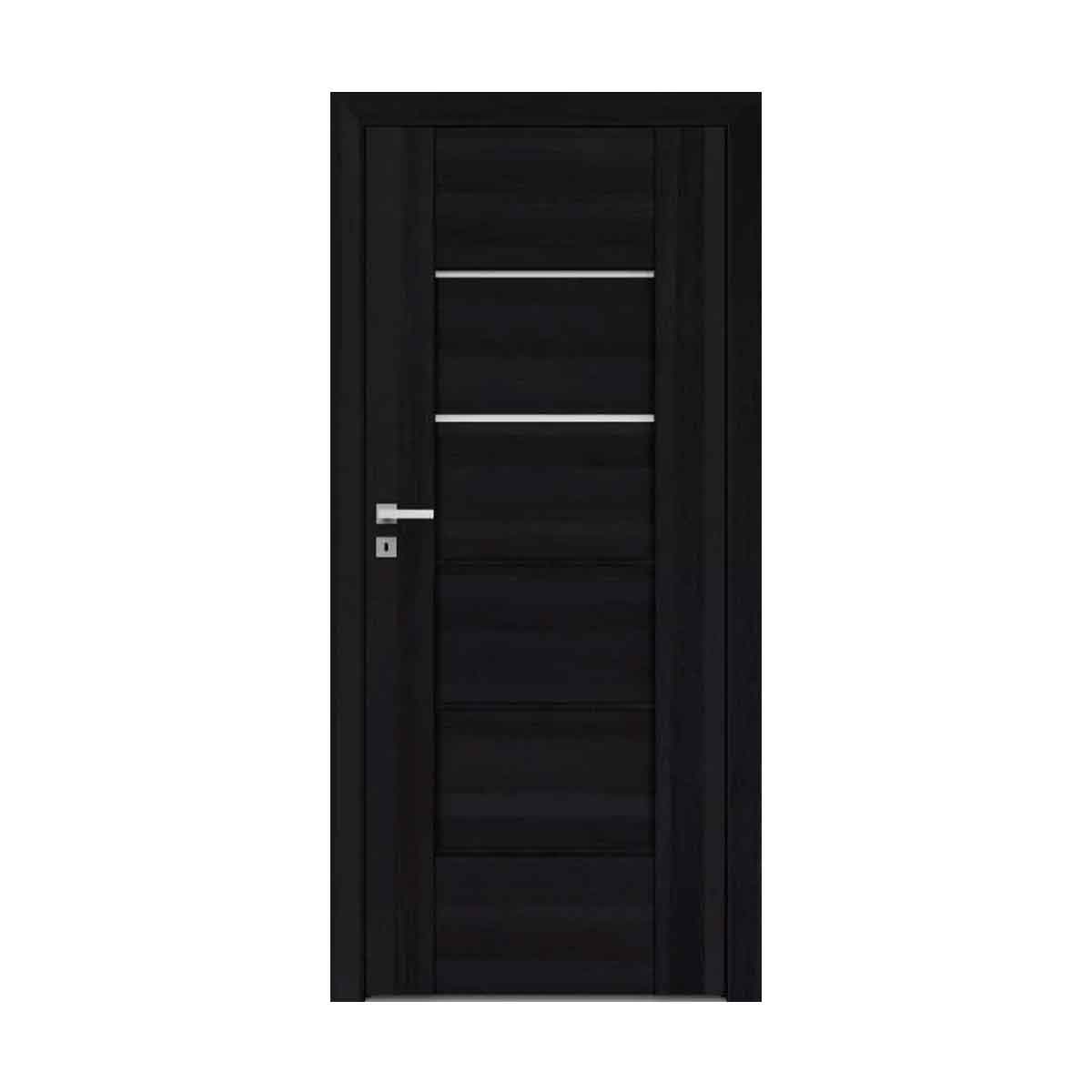 Okvir vrat je v celoti izdelan iz MDF plošč. Debelina vertikalnih podbojev je 40 mm in širina 160 mm, kar zagotavlja trajno strukturo vratnega krila. Vrata uporabljajo steklo MAT DRE debeline 4 mm in ravne HDF plošče.